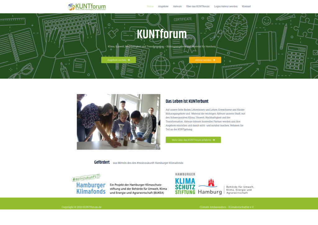 Die Themen MINT wurden um die Themen KUNT (Klima, Umwelt, Nachhaltigkeit und Transformation) ergänzt. Das neue KUNTforum bietet Anbietern die Möglichkeit ihre Bildungsangebote Schulen zugänglich zu machen. Die Schulen wiederum können die Angebote das ganze Jahr über erreichen und nutzen.